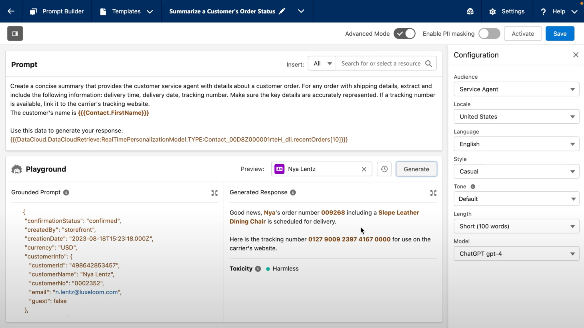 The key advantage of Prompt Builder is that you can use template notation to reference numerous fields from the database and even reference external data sources.